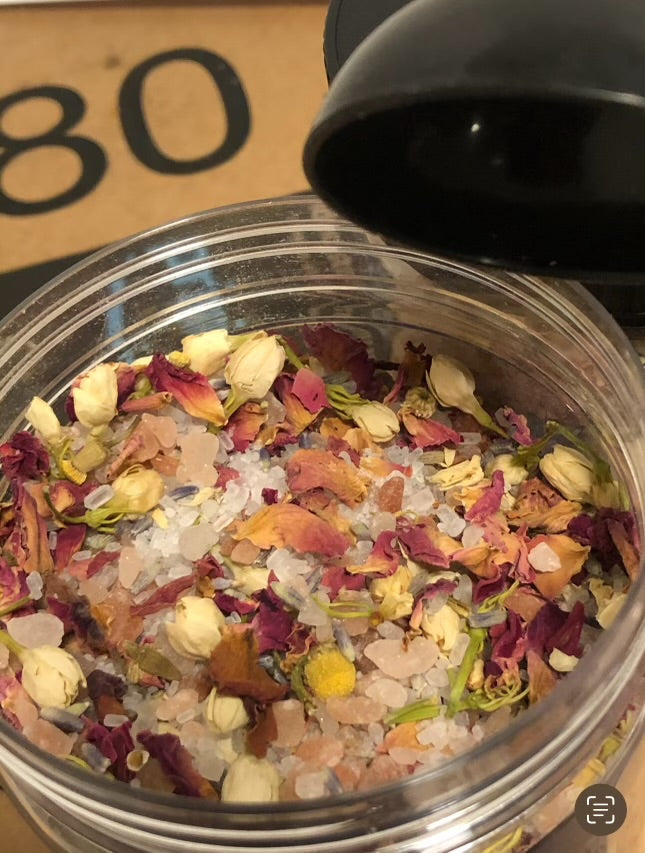 - Allow the salts and blossoms to steep as you soak, releasing their soothing aroma and minerals.